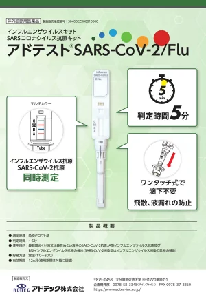 アドテストSARS-CoV-2/Flu(コロナ+インフルエンザの検査)1キット税込2300円です。